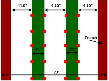 Wider/Deeper Trenching, creating more un-compacted soil     material beneath outside rows (i.e., creating a ~30' bed).